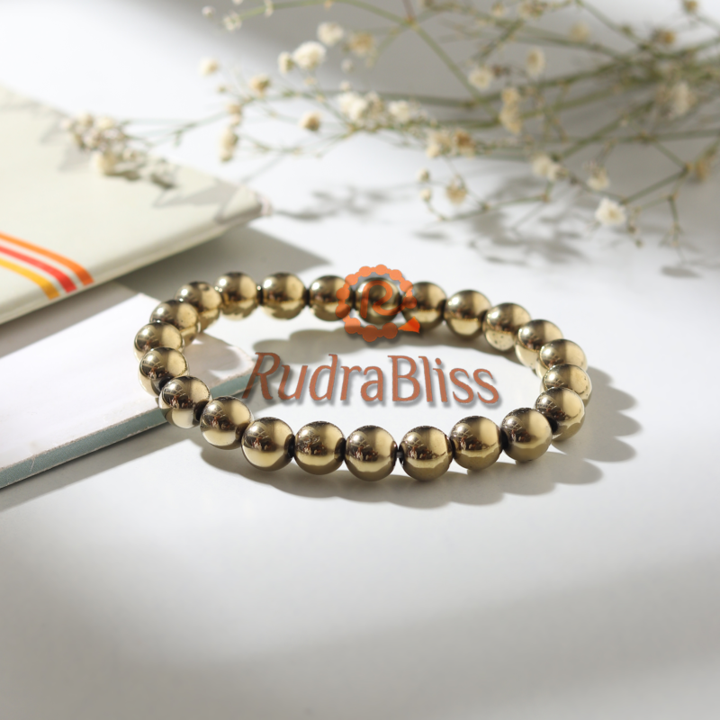 Golden Pyrite Stone Bracelet – 8mm Beads