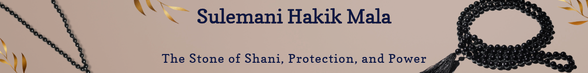 A Sulemani Hakik Mala, also known as a black agate mala, is a protective mala made from Sulemani Hakik stones, a type of black or multi-colored agate. Sulemani Hakik is a semi-precious stone with strong properties, traditionally used for spiritual purposes. The Sulemani Hakik Mala is often used for chanting mantras and meditating. Like most malas, a Sulemani Hakik Mala traditionally has 108 beads used for mantra recitation and meditation. Sulemani Hakik is a sturdy stone, making the mala durable for long-term use.