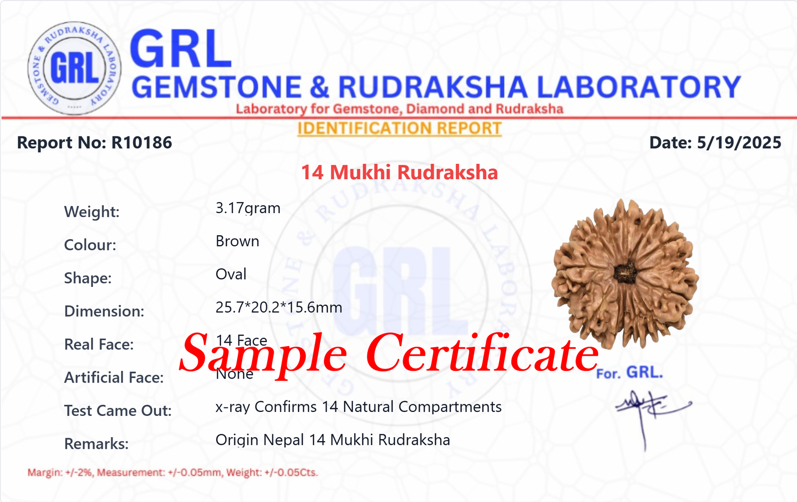 - Features 14 clearly defined natural mukhis (faces), certified for authenticity by expert gemologists.