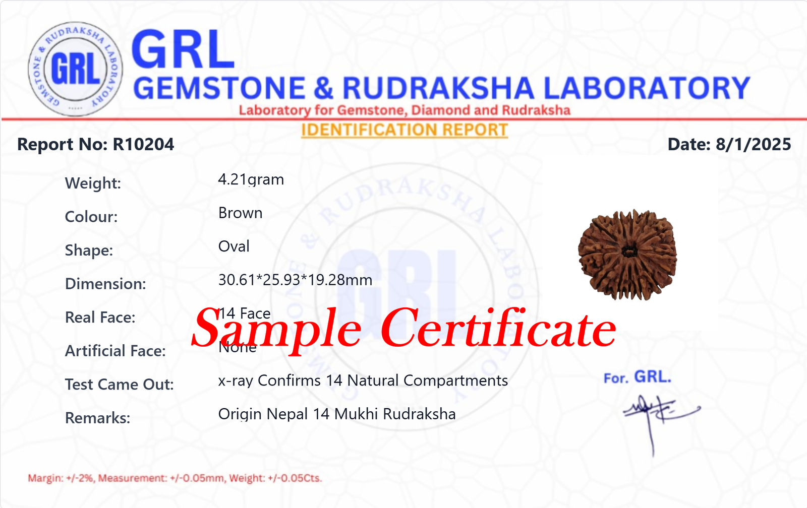 - 100% Natural Rudraksha: Authentic 14 Mukhi Rudraksha bead, No Artificial Treating