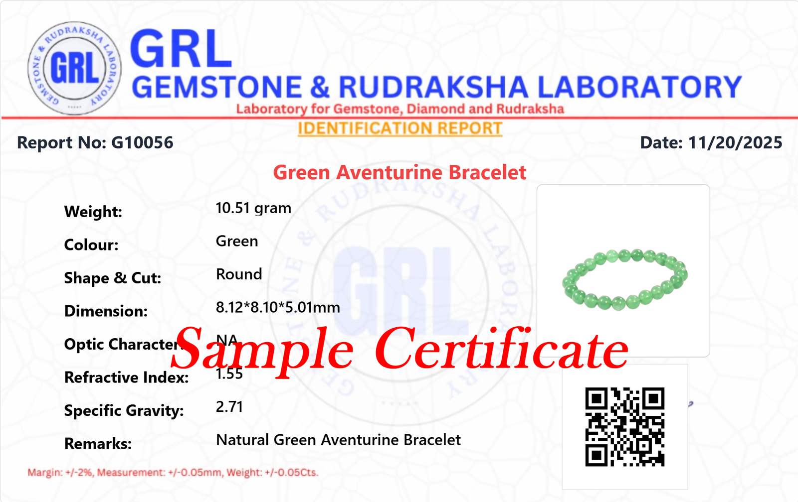 Each bracelet comes with a certified lab report verifying the authenticity and quality of the Green Aventurine gemstones, giving you full confidence in the natural origin of your crystal.