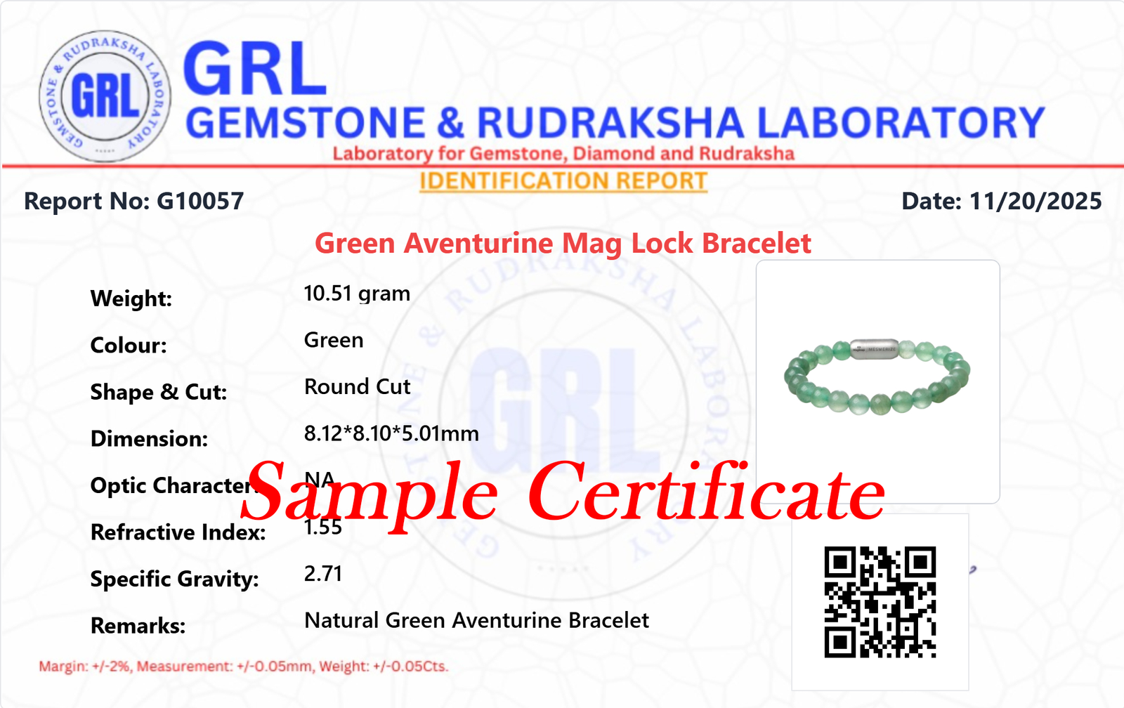 Comes with a certified lab report verifying the authenticity and quality of the Green Aventurine gemstones, ensuring you receive a 100% natural and high-quality crystal bracelet.