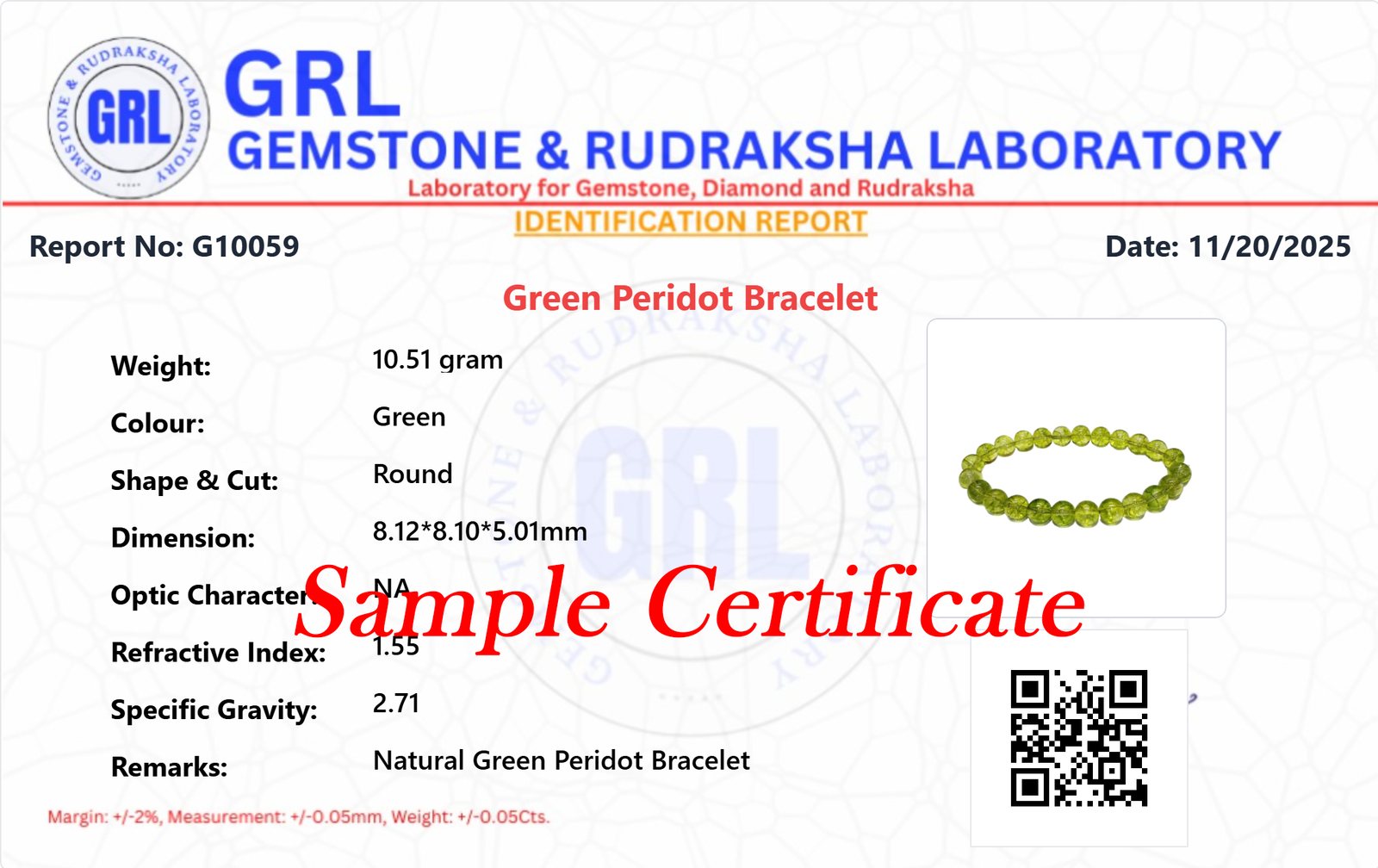 Each bracelet comes with a certified authenticity card, verifying that your peridot is natural and ethically sourced. This ensures peace of mind and guarantees the quality of your purchase.