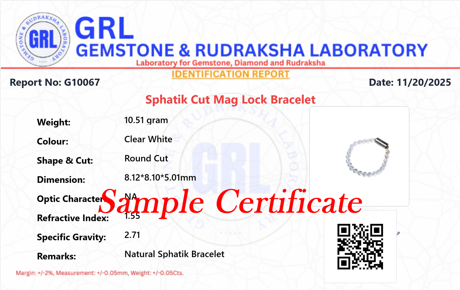 - Guarantees that the bracelet is made from genuine natural Sphatik (Quartz Crystal).