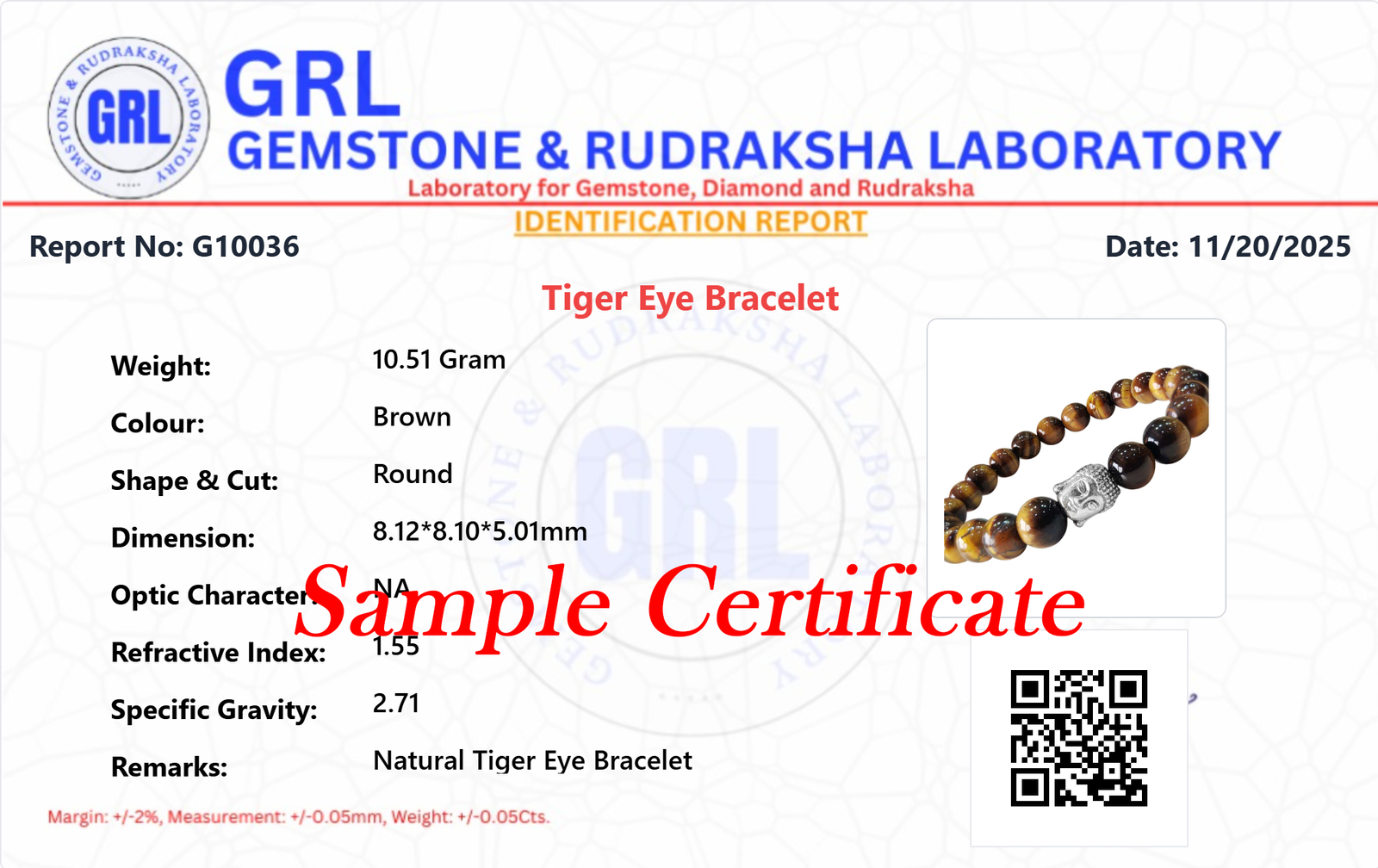 - Verifies that your bracelet is made from authentic Tiger Eye gemstones.