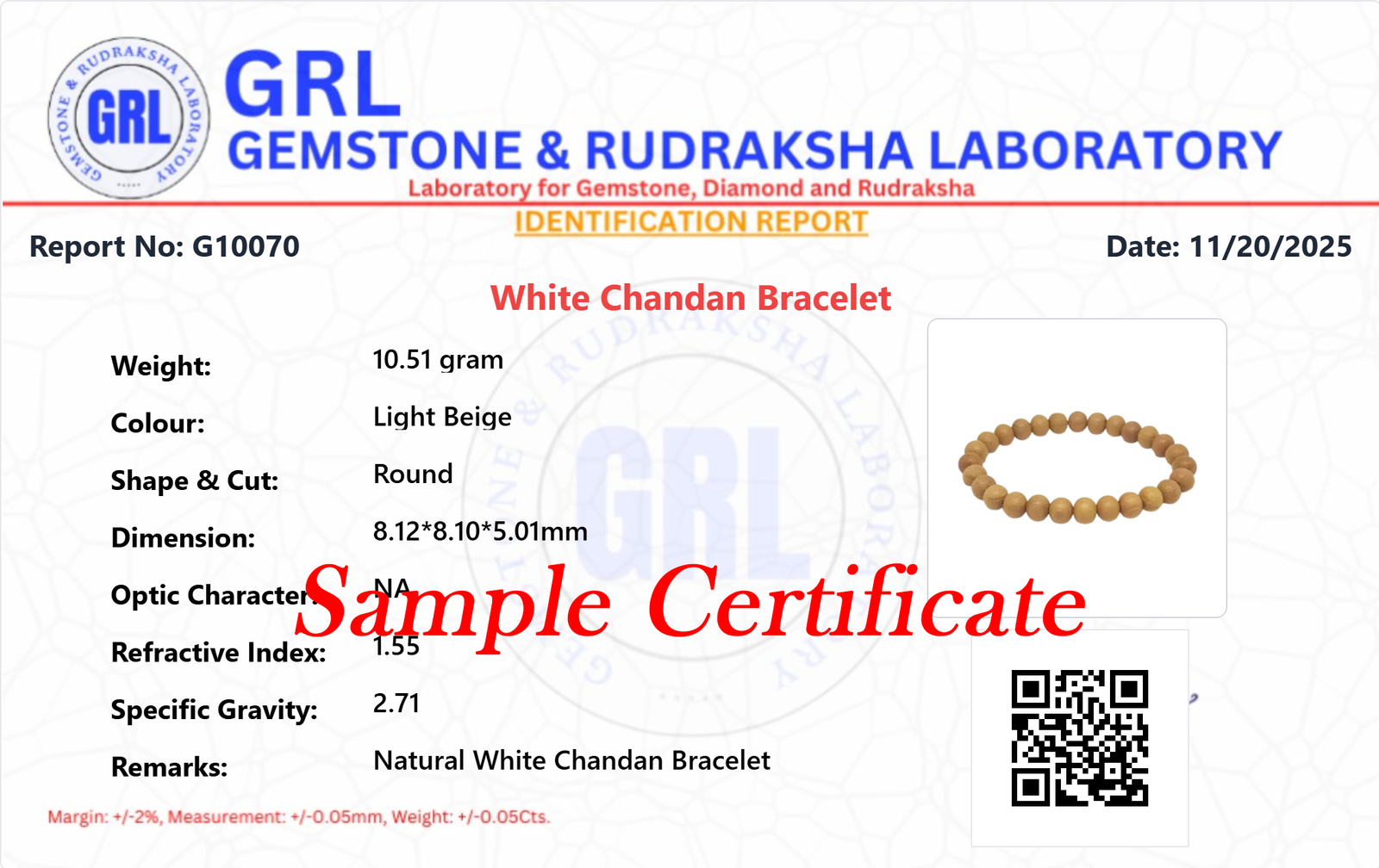 - Verifies that your bracelet is made from genuine White Chandan (Sandalwood).